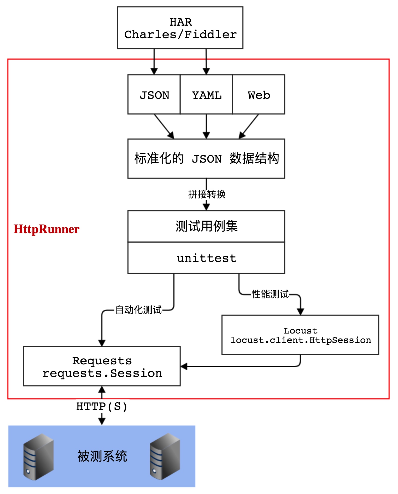 HttpRunner 通过复用 Locust,可以在无需对 YAML/JSON 进行任何修改的情况下,直接运行性能测试。